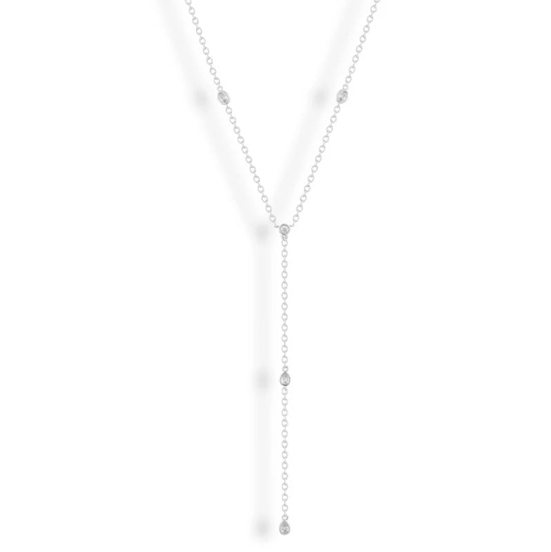 Introducing our Afterglow Lariat Necklace. This stunning piece features 5 bezel stones, adding a touch of elegance to any outfit. Experience the radiance and beauty of our unique necklace, guaranteed to make you stand out in any crowd.