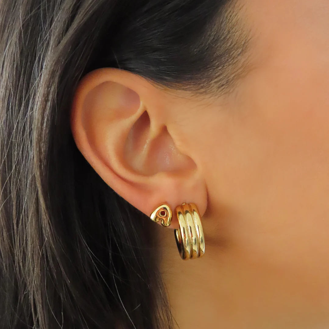 These adorable Kylie Earrings feature a ribbed hoop design that adds a touch of cuteness to any outfit. Comfortable to wear and easy to style, they are the perfect addition to your jewelry collection. Upgrade your look with these stylish earrings!