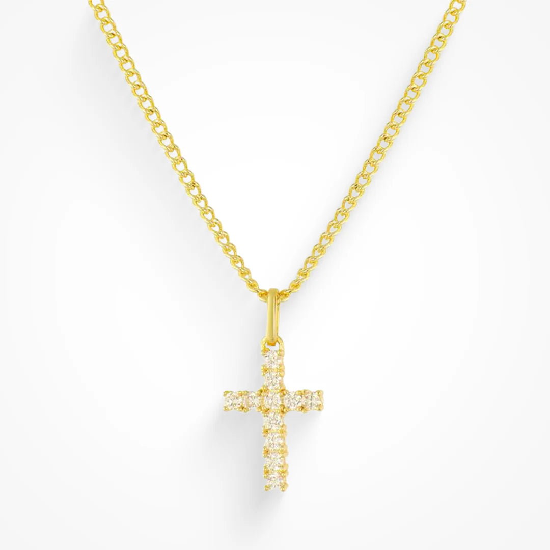 Blessing you with this must-have necklace. Perfect to wear with any outfit, this CZ stone-encrusted cross on a dainty chain can be paired with the Don’t Cross Me Huggies for a match made in heaven.