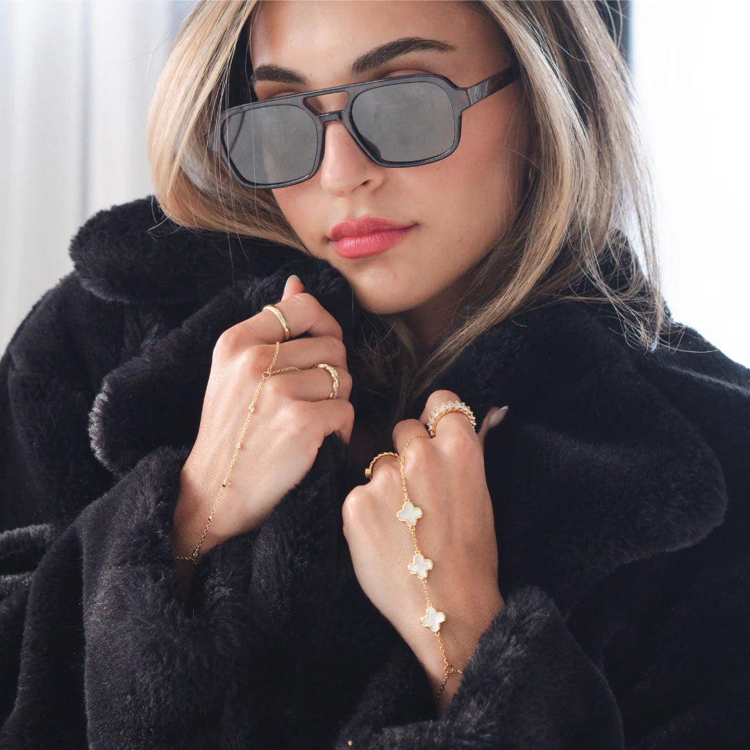 Feel lucky and stylish with our Feeling Lucky Hand Chain! This hand chain features 3 clover charms, adding a touch of luck to your look. Enhance any outfit with this unique and eye-catching accessory.