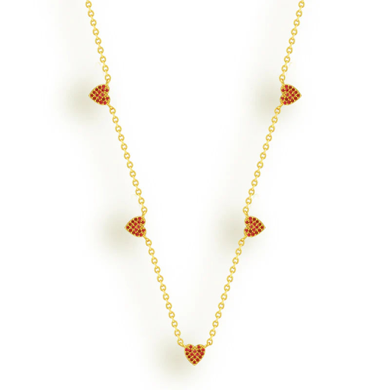 Make a statement and show your love with this full of love necklace! Pave hearts sparkle and shine as you bling up your stack with this beautiful addition. Perfect for that special someone or for your own sweet self-care. Wear it and let everyone know you're full of love!