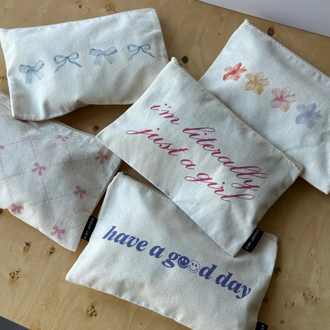 This cute toiletry bag is perfect for your daily essentials. Keep all your small items organized and close at hand with this Have A Good Day bag. It's just the right size for travel convenience and adds a touch of cuteness to your routine.