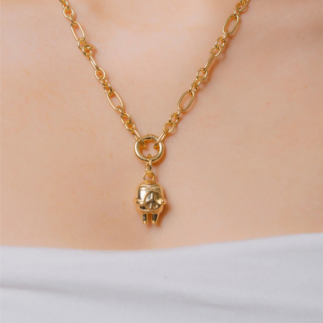 Spread some peace and love with the Ketnipz Bean Peace Charm. This adorable charm features everyone's favorite character, Bean, holding a peace sign to remind you to free your mind and spread positivity wherever you go. The cutest addition to any accessory collection!