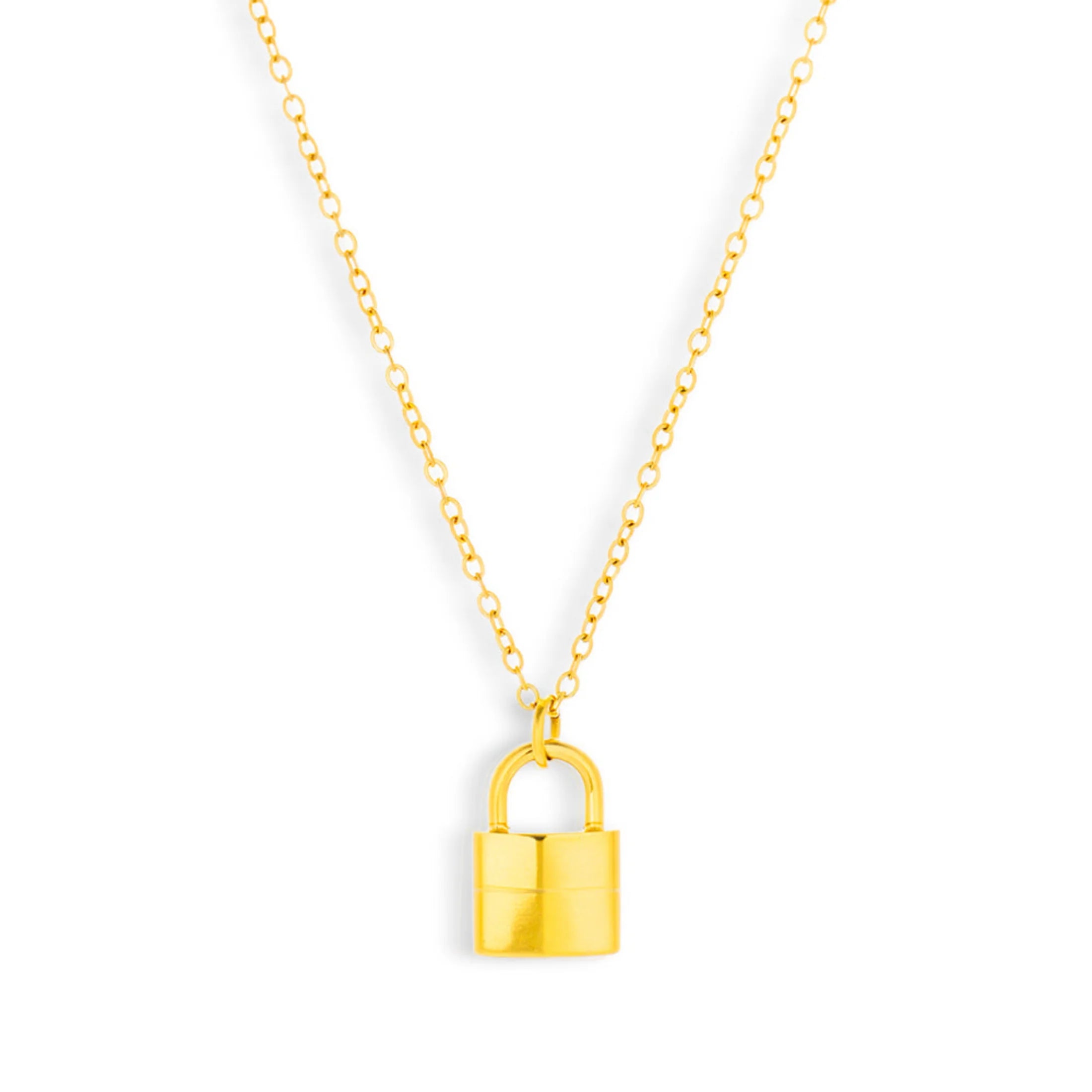 A sleek padlock charm hangs from a minimalist chain, adding a bold, edgy twist to any outfit. Wear it solo or stack it up—either way, it’s a statement you’ll keep coming back to.