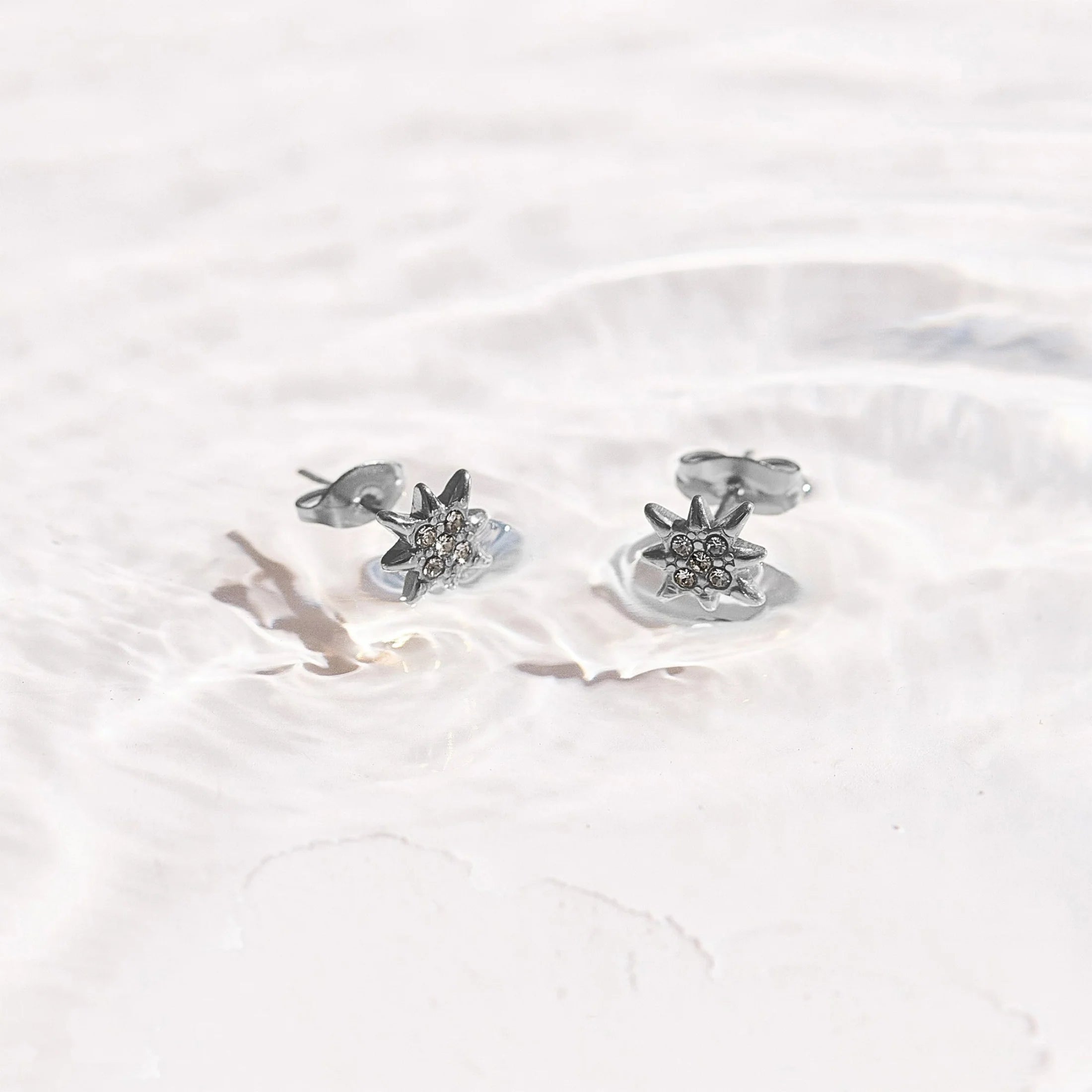 Add a celestial sparkle to your ear stack with these radiant North Star Crystal Studs. Featuring a classic eight-pointed star design set with dazzling round-cut clear crystals, these studs strike the perfect balance of charm and boldness. A must-have for starry-eyed jewelry lovers.