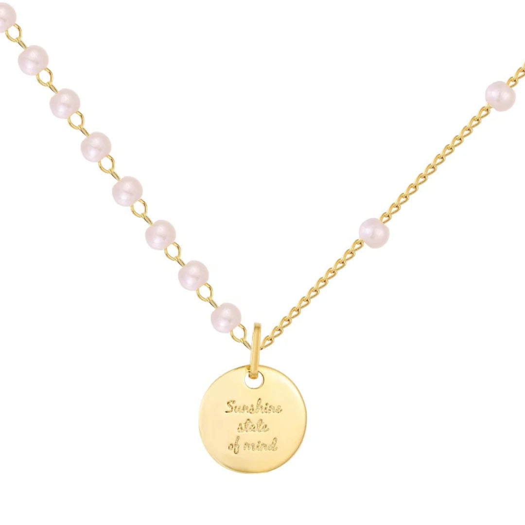 A delicate necklace featuring a radiant sun pendant on a dainty chain adorned with soft pearls. The perfect balance of elegance and shine, making it an effortless everyday piece or a chic layering essential.