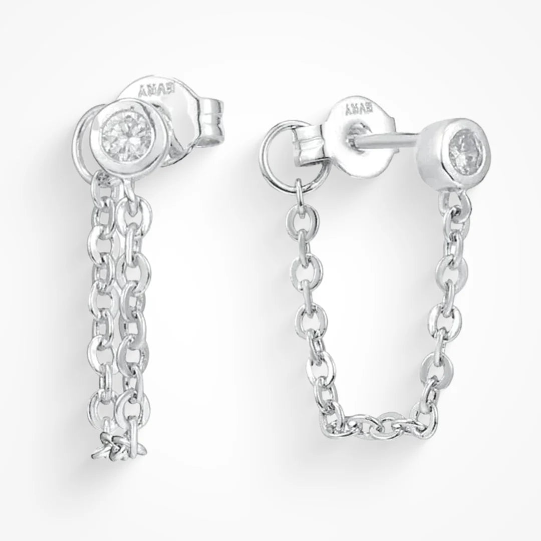 Add a touch of edgy cuteness to your style with these Stellar Earrings. These dangle chain earrings are accented with sparkling cz stones, creating a unique and eye-catching accessory that is perfect for any occasion. Elevate your look with these stunning earrings.
