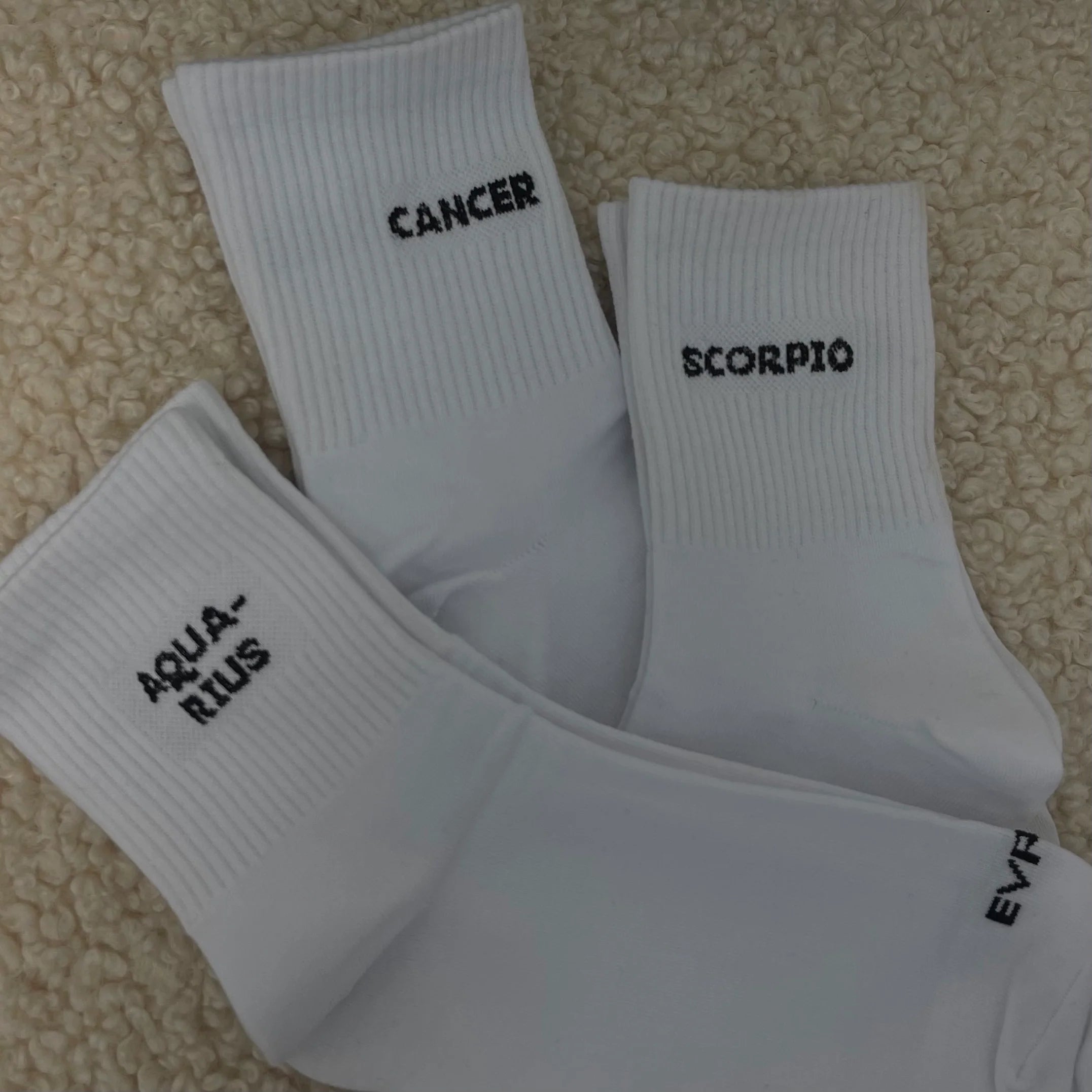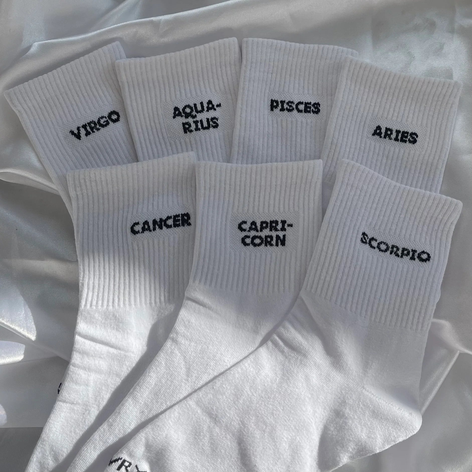 Step into your star sign with our playful Zodiac Socks for women. These cozy socks bring a fun, celestial vibe to your everyday look while keeping your feet comfy and stylish. Perfect for showing off your zodiac pride with a touch of whimsy in every step.